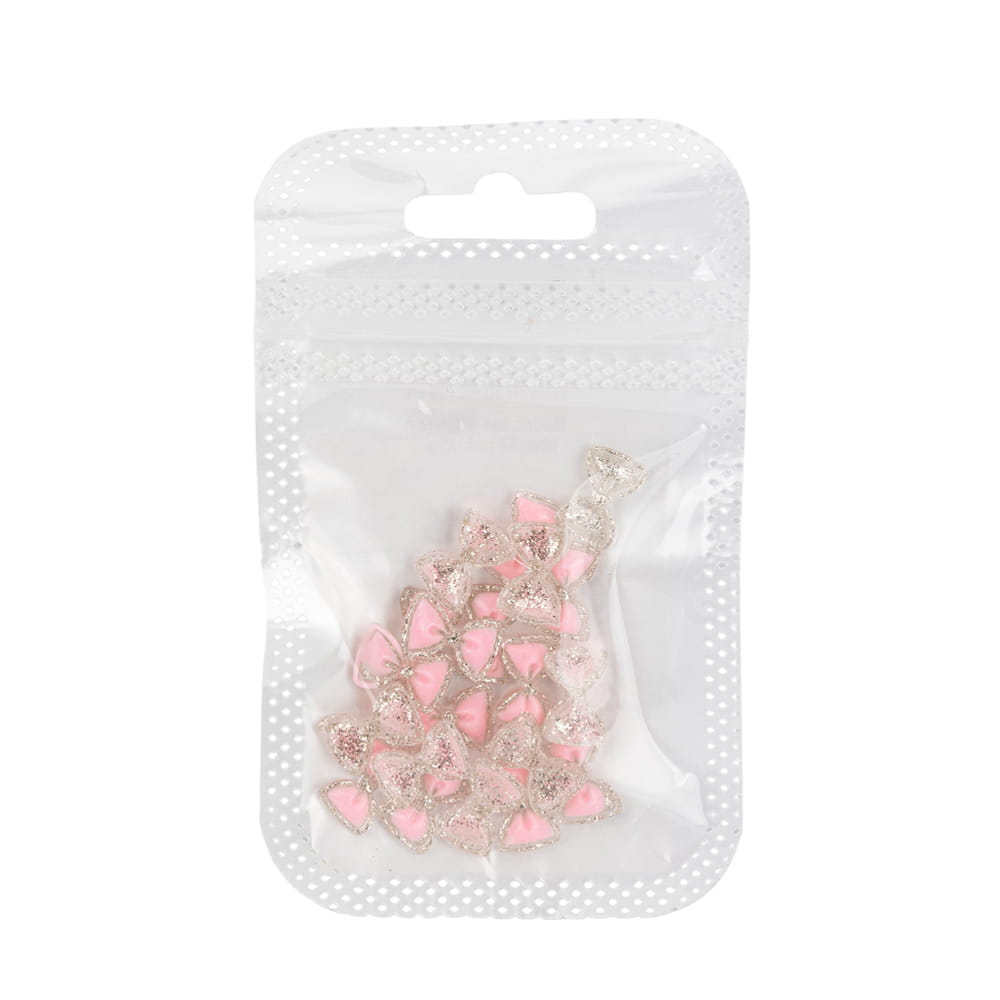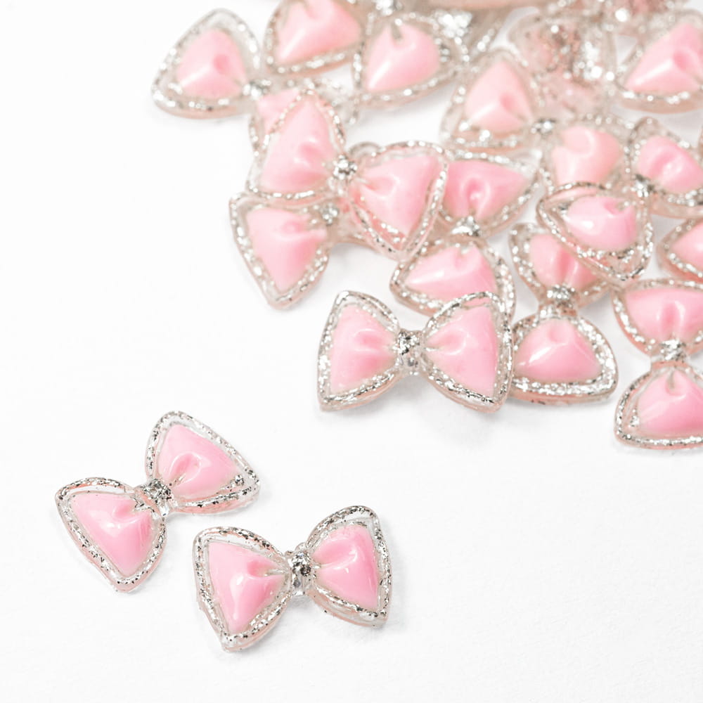 Ozdoby do paznokci kokardki 3D różowo srebrne 20 szt