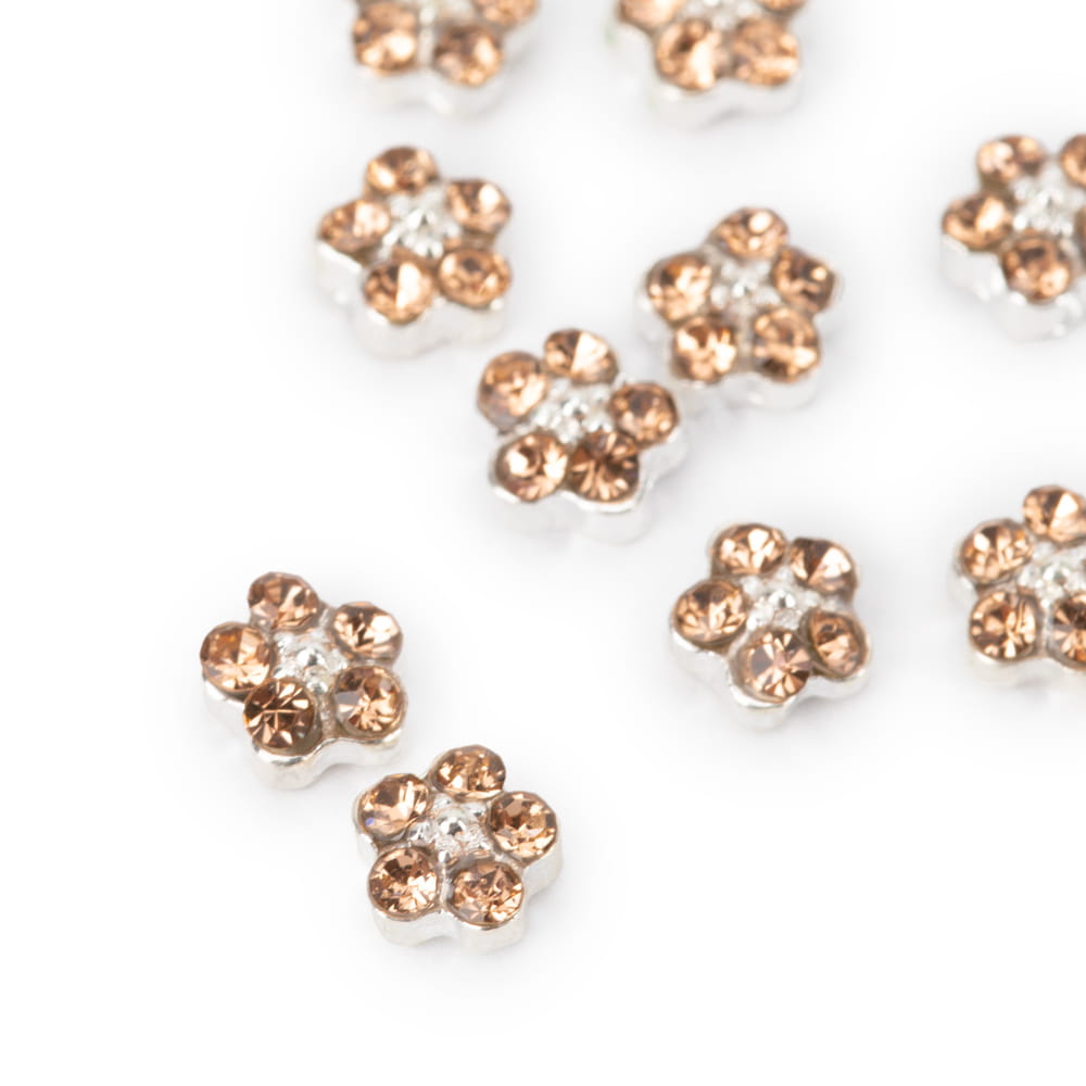 Wzbogać swoją stylizację o eleganckie ozdoby 3D w kształcie kwiatków od Molly Nails! Błyszczące cyrkonie osadzone w srebrnej podstawie nadają paznokciom luksusowego wyglądu i pięknie odbijają światło, tworząc efekt biżuteryjnego manicure.