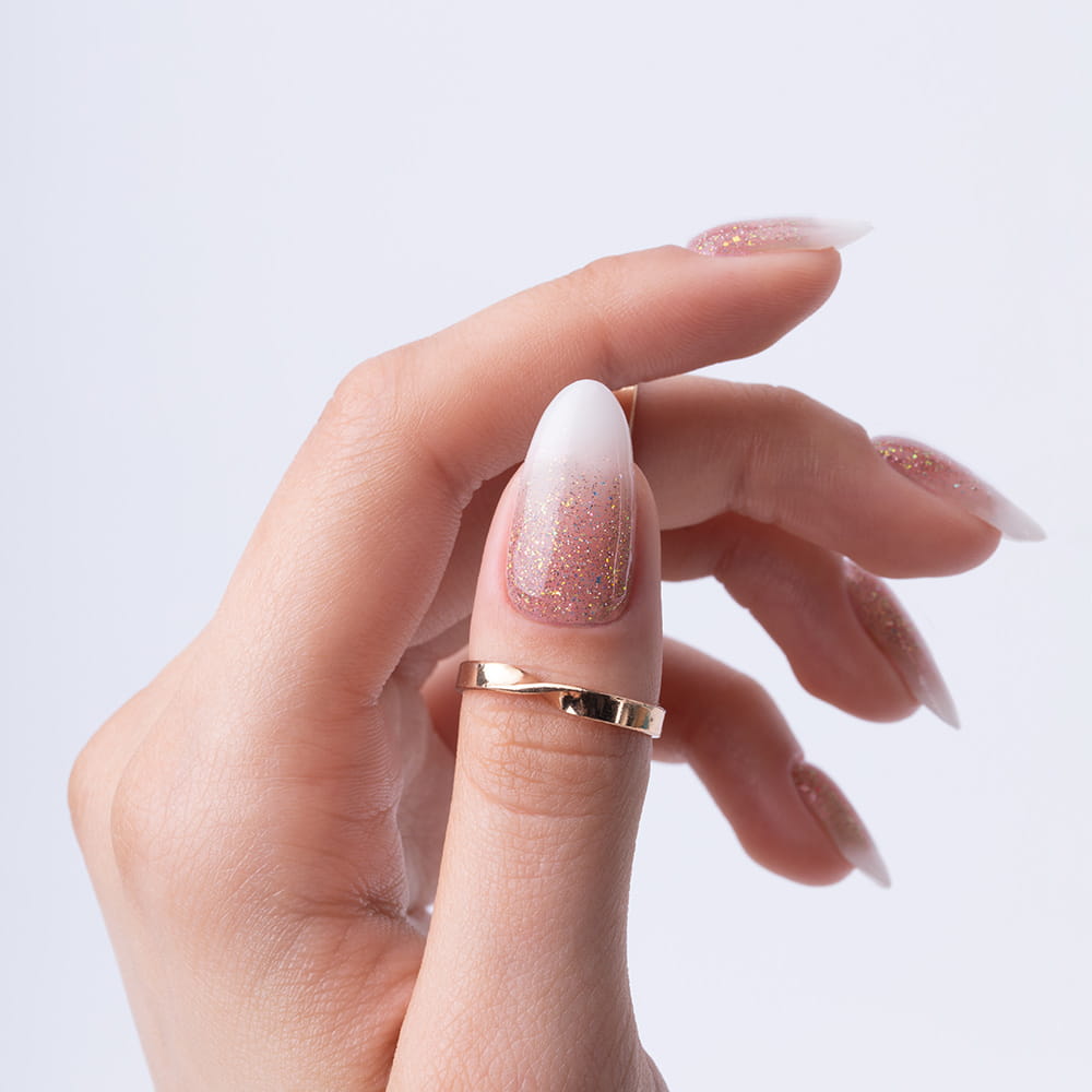 Paznokcie ombre jasne z brokatem