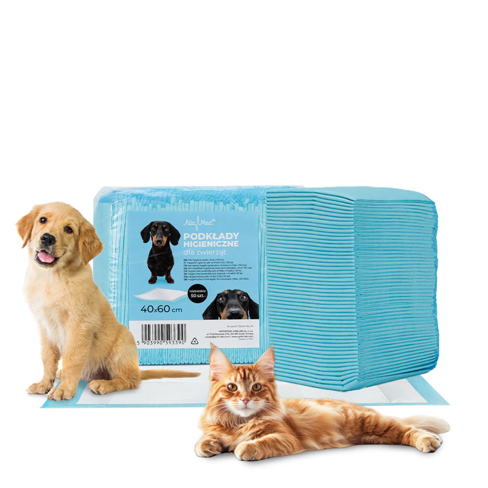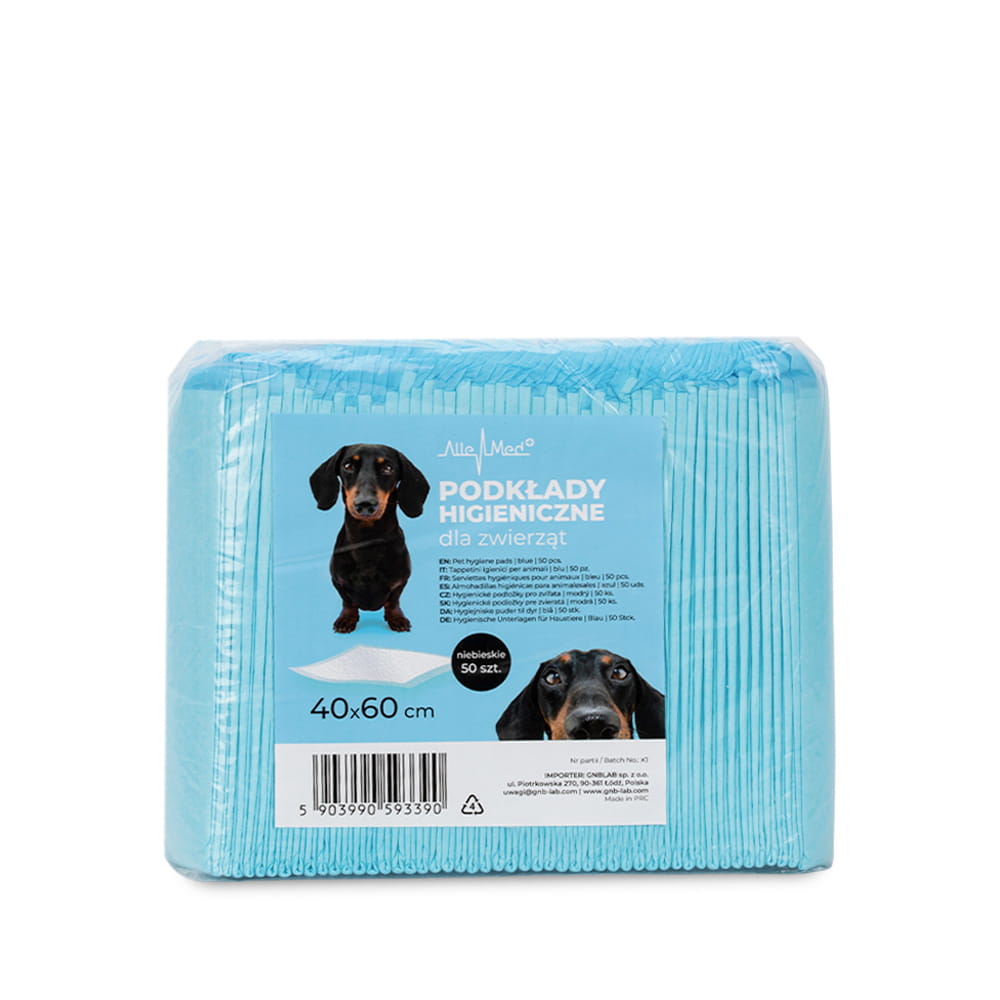 Podkłady mata maty chłonne dla psa nauka sikania higiena czystość AlleMed 50 szt. 40x60 cm niebieskie