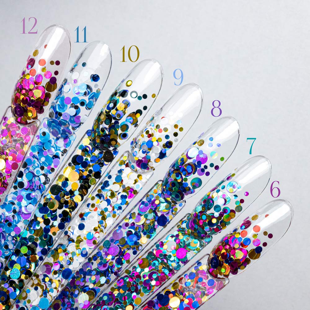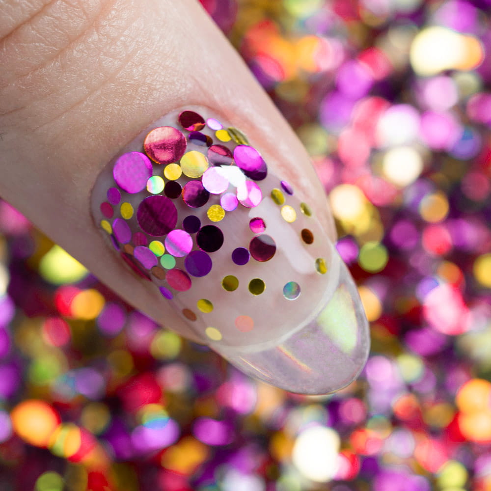- Wielokolorowe i różnorodne – mix kolorowych piegów i kropeczek o różnych średnicach urozmaicą Twoją stylizację.