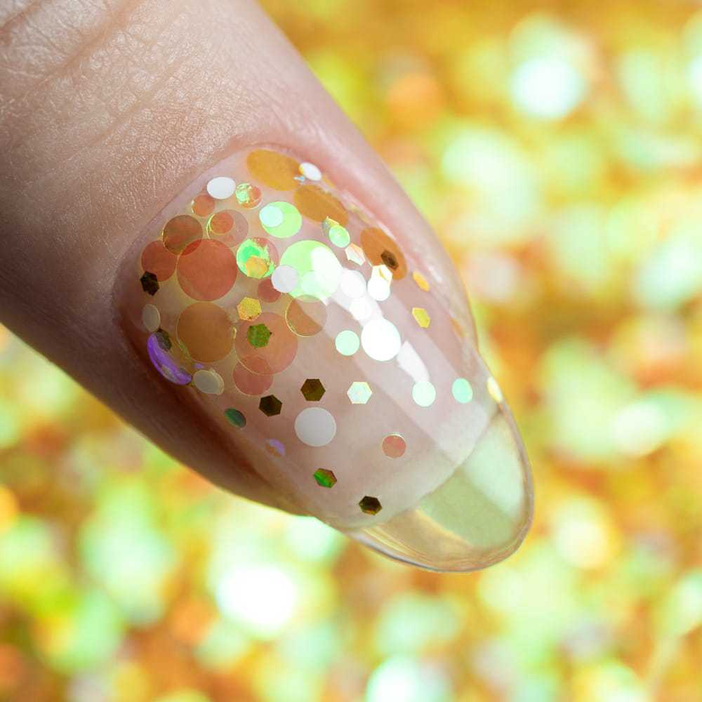 - Wielokolorowe i różnorodne – mix kolorowych piegów i kropeczek o różnych średnicach urozmaicą Twoją stylizację.