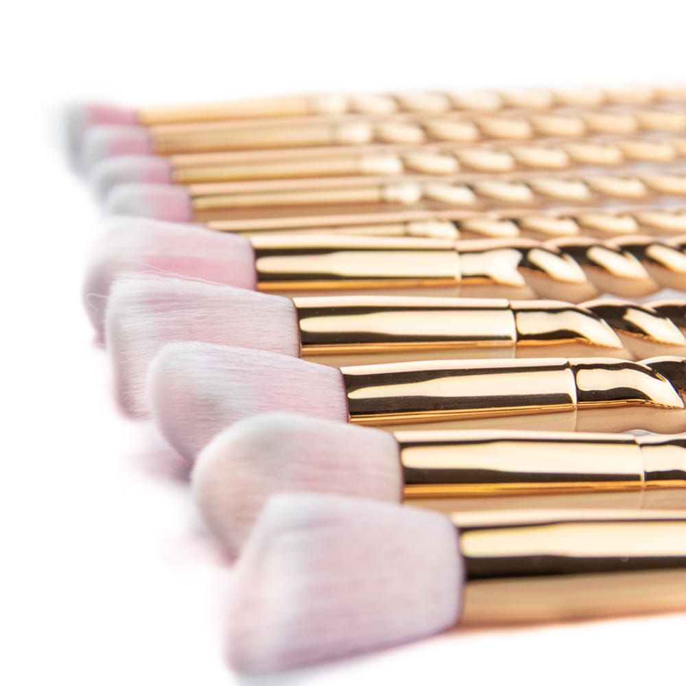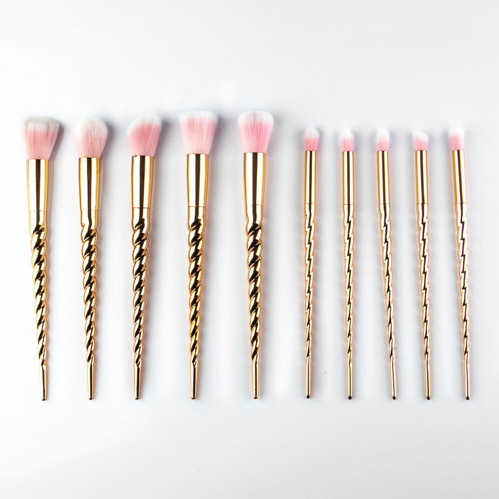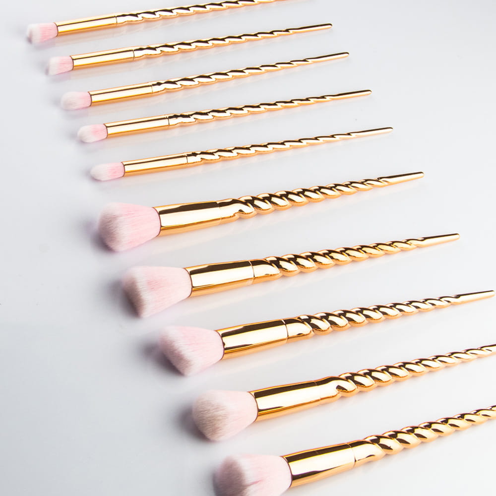 Profesjonalne złote pędzle do makijażu wyjątkowy zestaw 10 sztuk