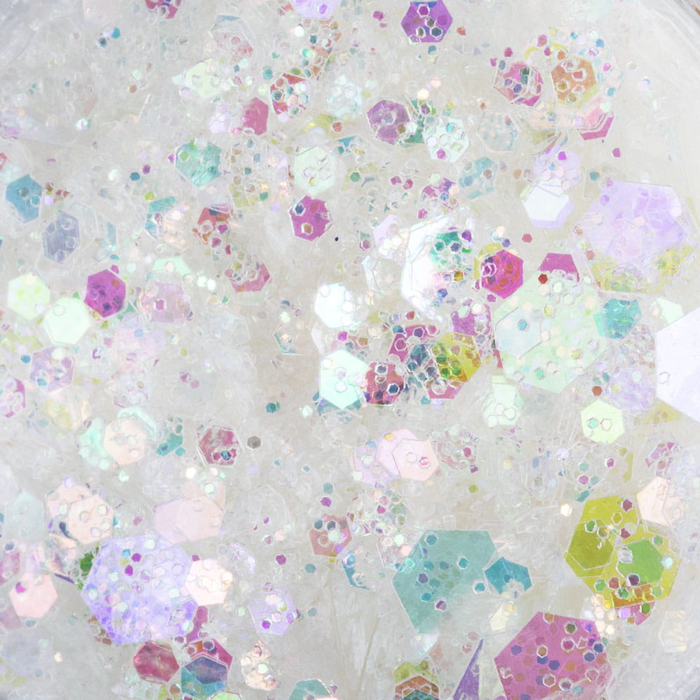 Pół transparentny odcień roziskrzonej bieli - czyli klasyka idealna na każdą okazję. Zastosuj na jasne odcienie aby otrzymać delikatną mieniącą się różem z domieszką turkusu poświatę, zastosuj na ciemne odcienie aby efekt był mocny, bardziej wyrazisty mocno zaakcentowany turkusem.