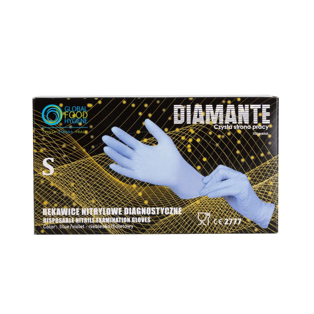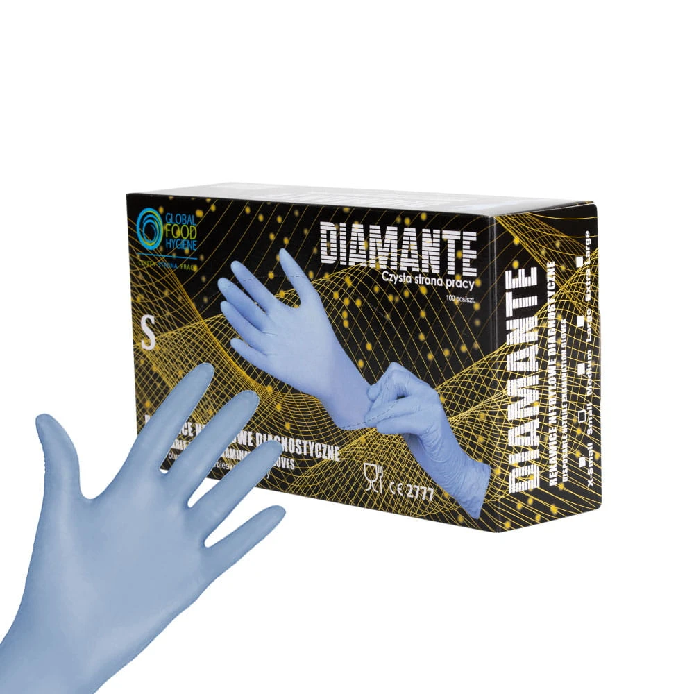 Rękawice nitrylowe diagnostyczne niebieskie Diamante Czysta strona pracy rozmiar S 100 szt.