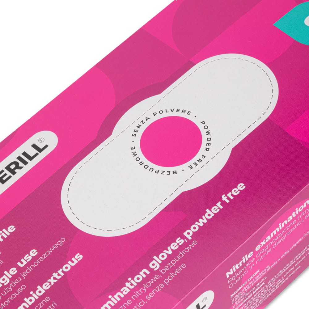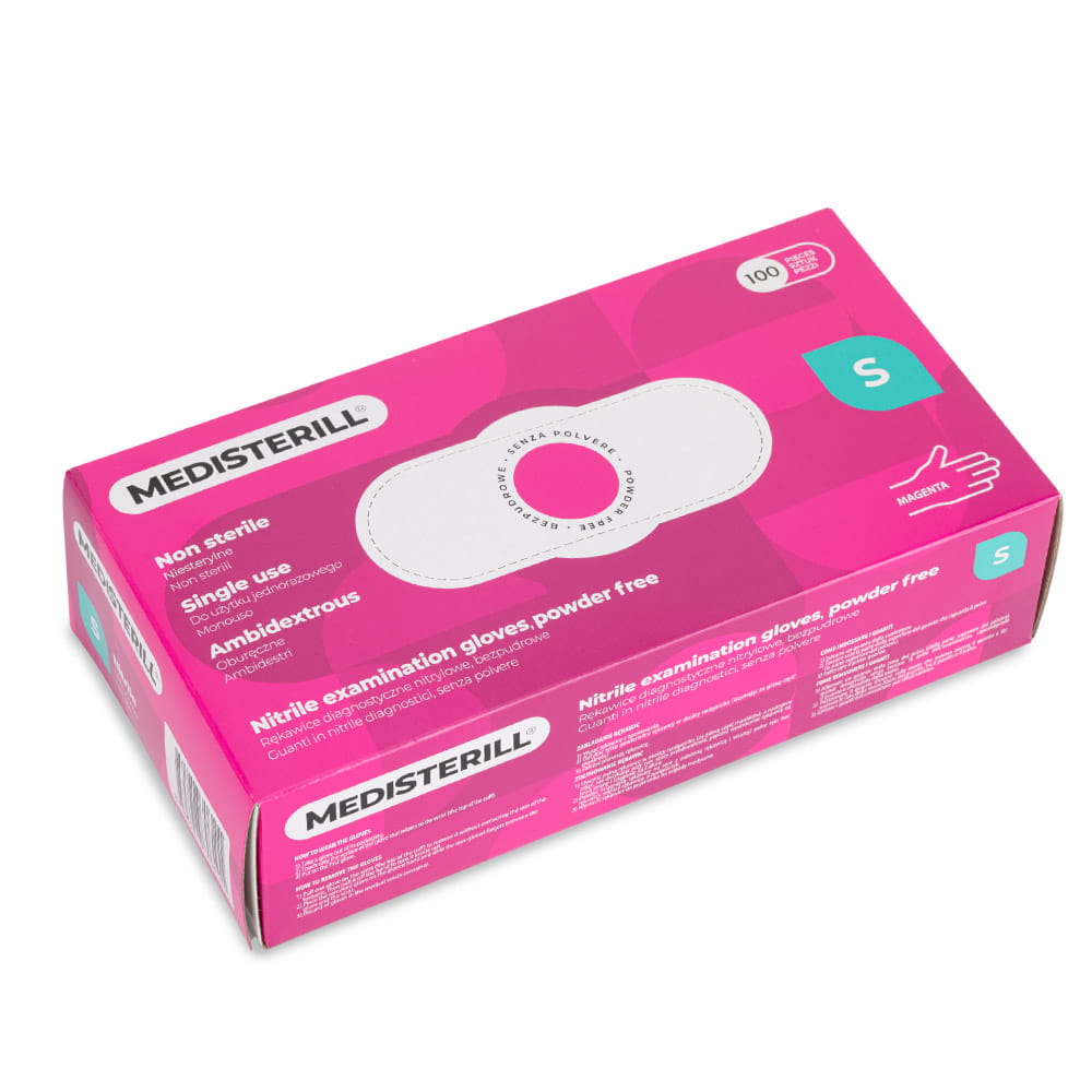 Rękawiczki jednorazowe nitrylowe diagnostyczne i ochronne Medisterill rozmiar S magenta 100szt