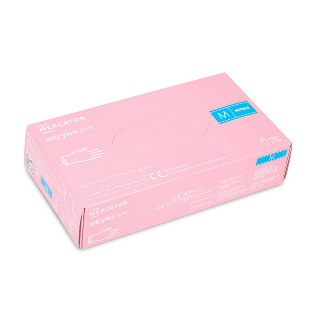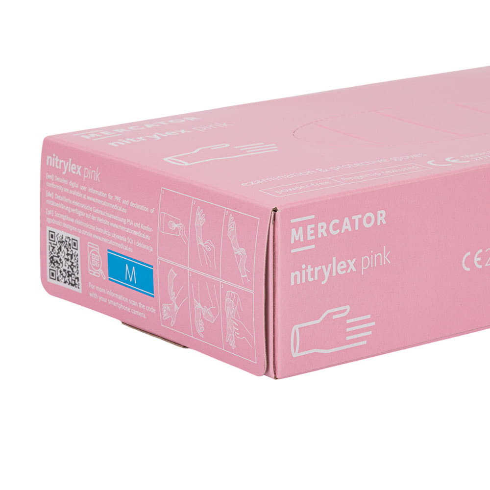 Rękawiczki jednorazowe nitrylowe diagnostyczne i ochronne Mercator rozmiar M różowe 100 szt