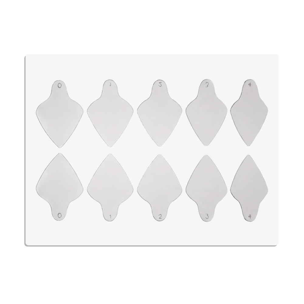 Silikonowe naklejki pomagają na zbudowanie żelem coverowym idealnego łożyska , tak by french konstrukcyjny był prosty i szybki w wykonaniu. Dzięki 4 różnym kształtom możemy wykonać idealne łożysko do każdej długości paznokcia, od kwadratów aż po awangardę.