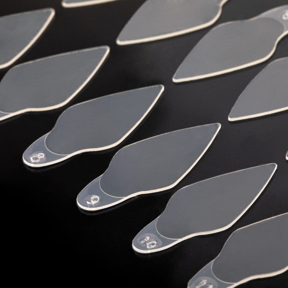Przyspiesz swoją pracę i użyj samoprzylepnych silikonowych form od MollyLac! Poznaj samoprzylepne naklejki, które ułatwią pracę i w prosty sposób stworzysz piękną linie frencha konstrukcyjnego. Te bezbarwne, samoprzylepne silnikowe plasterki umożliwiają wykonanie perfekcyjnej linii uśmiechu oraz zbudowanie łożyska w szybki i łatwy sposób.