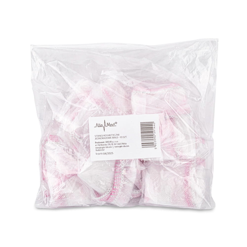 Stringi kosmetyczne jednorazowe białe różowa lamówka AlleMed 10 szt