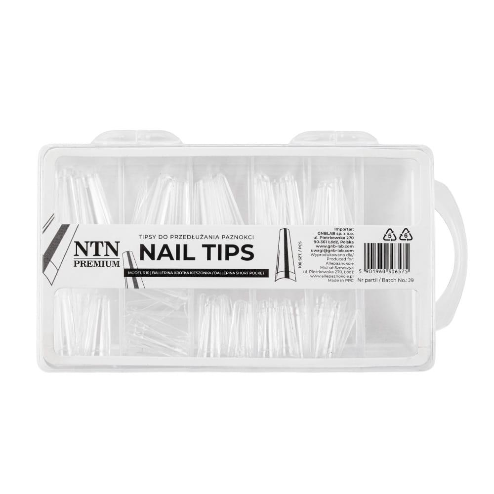 Tipsy do szybkiego przedłużania paznokci Nail Tips NTN Premium ballerina krótka kieszonka 100 szt