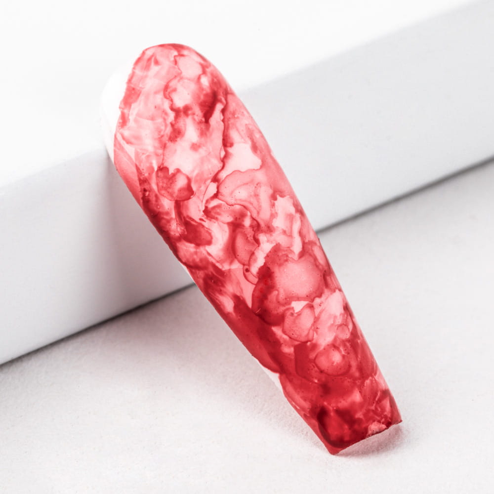- Na lakier hybrydowy nałóż Molly Lac ART WATER INK, tak aby plamki rozmyły się, możesz również użyć do tego cienkiego pędzelka oraz cleanera. Poczekaj aż zdobienie wyschnie.