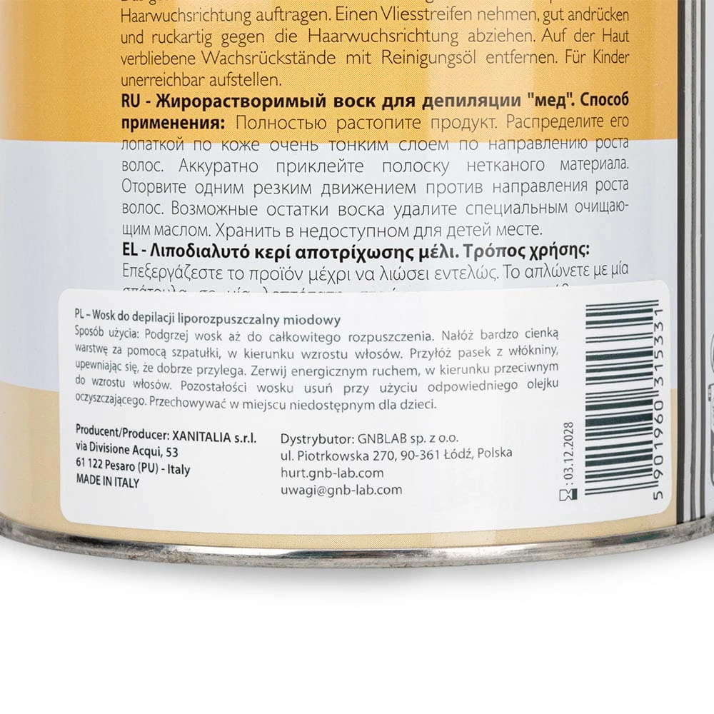 Skład Wosk do depilacji w puszce do depilacji paskowej Xanitalia Miele miodowy 800ml
