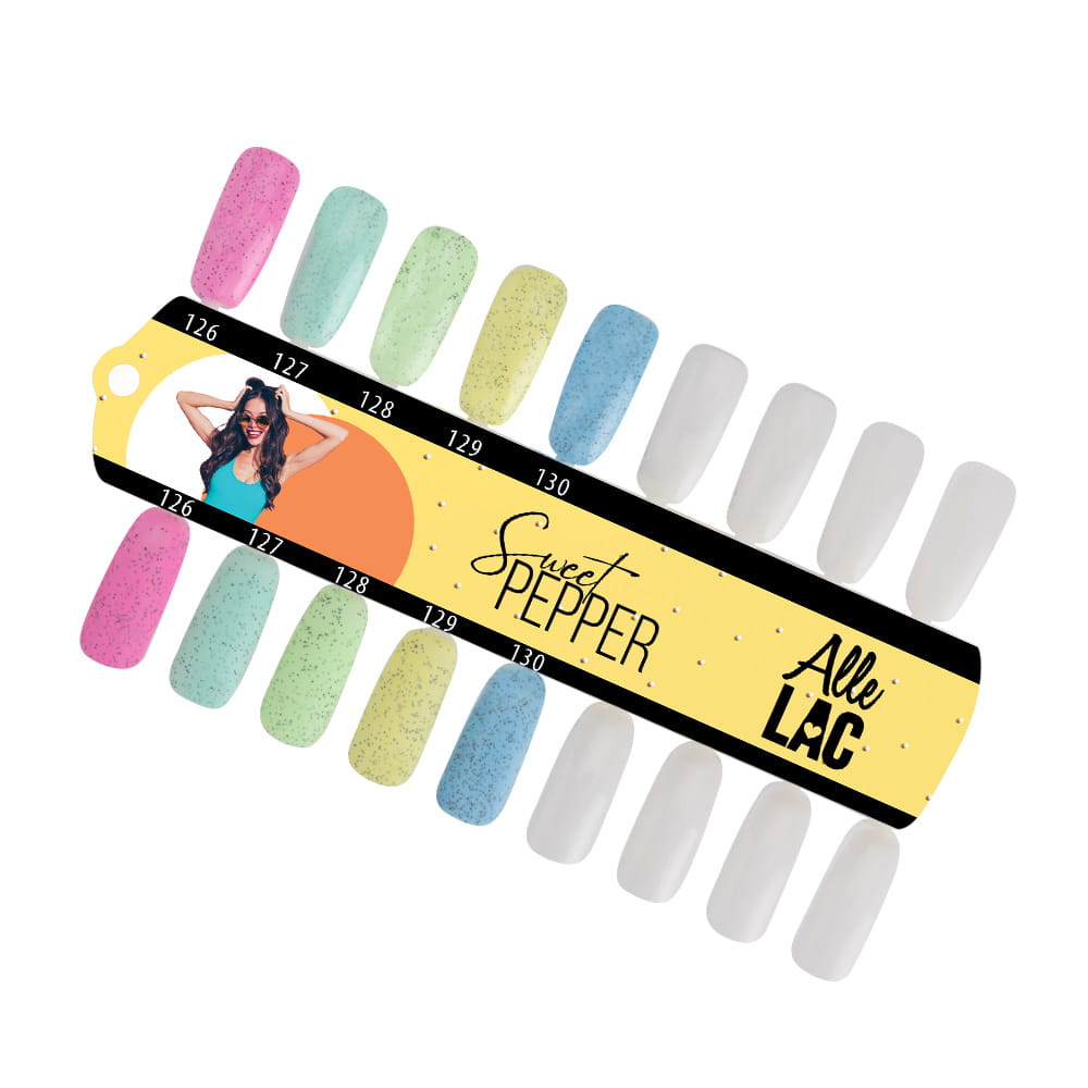 Sweet Pepper: Słodka kolekcja wyjątkowych kolorów od AlleLac w których główną rolę gra szczypta pikanterii. Delikatne, pastelowe, a zarazem pełne wdzięku barwy pozwolą Ci na fantastyczną zabawę podczas zabiegu manicure. Daj oczarować się efektowi, które podbija serca – wypróbuj kolekcję Sweet Pepper i pokaż światu modną stylizację przepełnioną nie jednym a dwoma efektami – wspaniała symfonia pastelu i pieprzowych drobin to absolutny majstersztyk!
