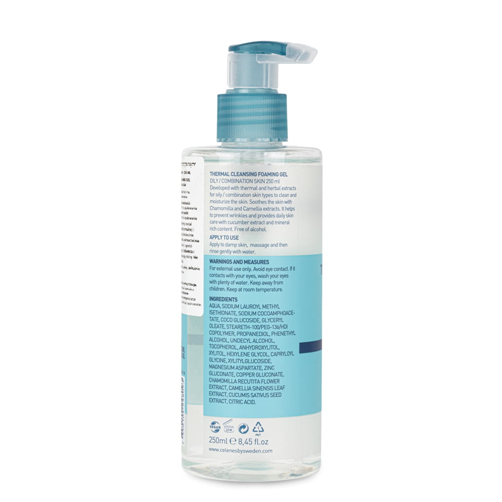 Celenes By Sweden Thermal Cleansing Foaming Gel został opracowany na bazie wody termalnej i ekstraktów roślinnych, aby skutecznie oczyścić skórę tłustą i mieszaną, jednocześnie zapewniając jej nawilżenie.