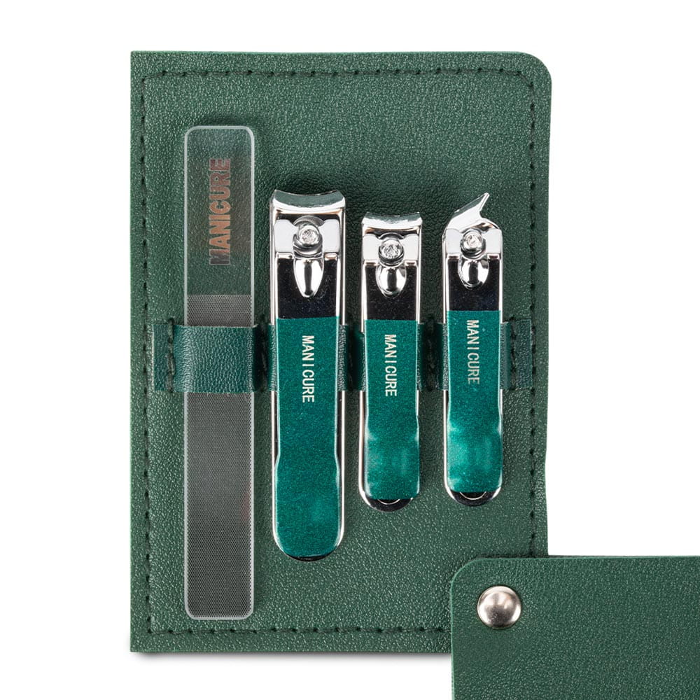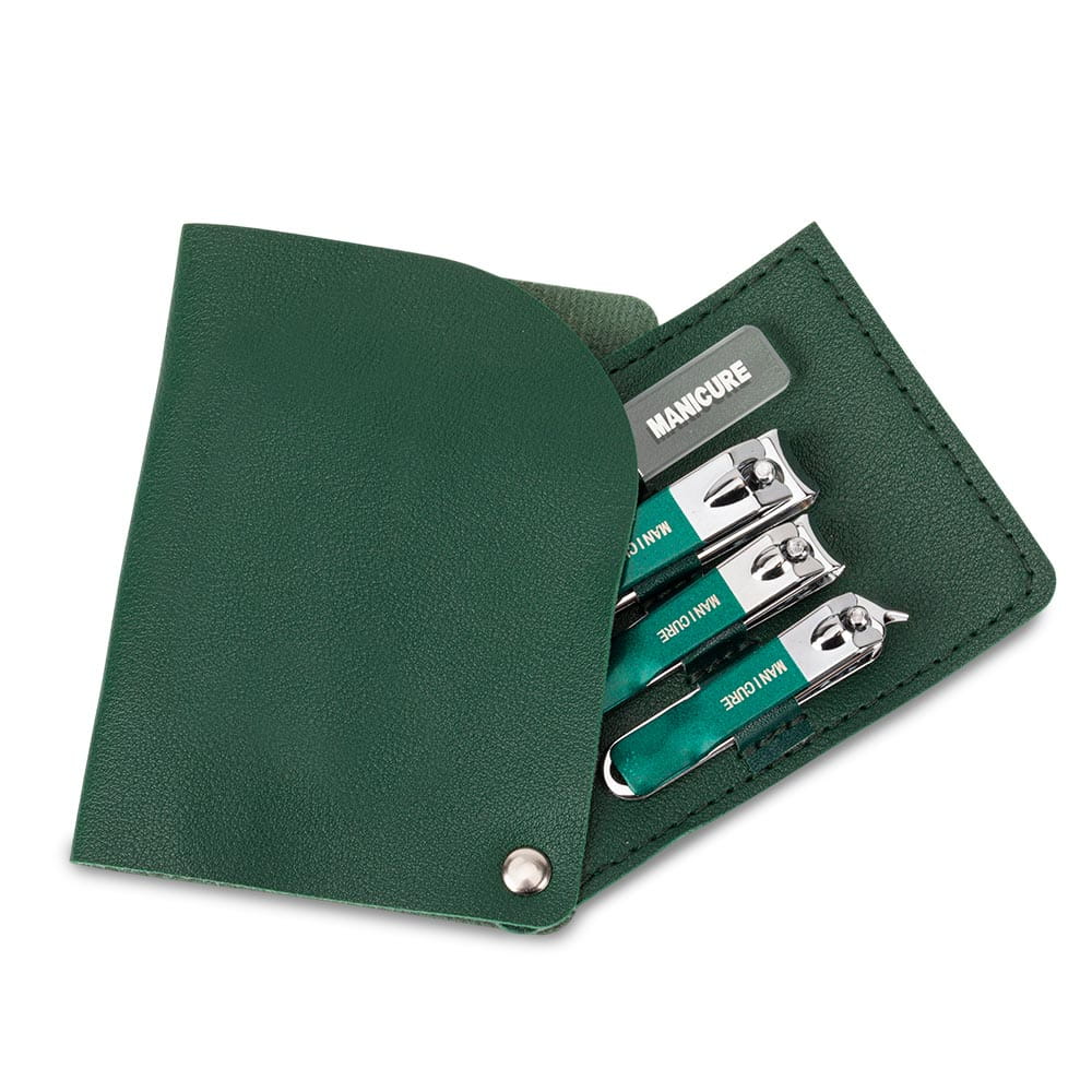 Zestaw 4 akcesoriów kosmetycznych do manicure, pedicure ciemny zielony