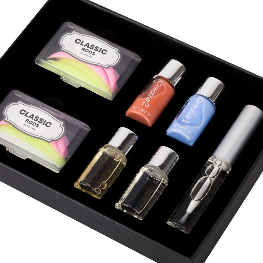 Zabieg z wykorzystaniem tego zestawu pozwala na wydłużenie, zagęszczenie i uniesienie (podkręcenie) rzęs i jest skuteczną alternatywą do przedłużania rzęs metodą 1 do 1. Zalecany szczególnie dla pań o długich i prostych rzęsach.