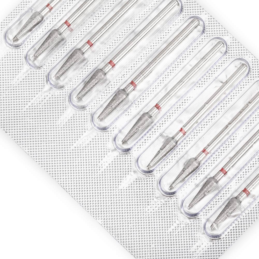 Zestaw frezów diamentowych gruszka czerwony delikatny 10 szt